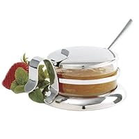 Ideal for serving cheese, jam, or salsa, this handy, stainless steel container has an 8-ounce, removable, glass dish for easy cleanup. The container comes with a serving spoon.