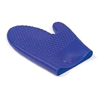 Progressive International is your source for the widest range of functional, inventive, and fun kitchen tools and great ideas put into practice. Our in-house designers spend hours in the kitchen coming up with ways to improve on a variety of traditional tasks and tools. Established in 1973, our commitment to quality and service allows us to offer a broad selection of quality kitchenware and other household products. This Progressive International blue silicone oven mitt features an improved pattern for added grip, and a built-in magnet for attaching the mitt to a stove or other magnetic surface. It is heat resistant to 600F and measures 9-inch long.