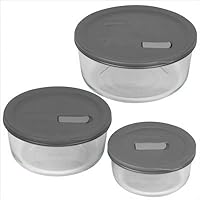 6-pc value pack includes 2, 4 & 7-Cup rounds w/ plastic lids. Leak proof and air tight seal for secure storage . Vents for microwaving . Lid tab for easy open and close. BPA-free plastic. Microwave and dishwasher safe.