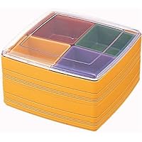 * Two Tiers Bento Box* Dimension 8-3/4 Sq. x 4-3/4 in H* Capacity: 4.5 Liter* First Tier has 4 Removable small box fits into a big box * each small box MEAS 4x4 in* Microwave and Dishwasher Safe * Lid Not Recommend for Microwave and Dishwasher.* Made in Japan by Inomata